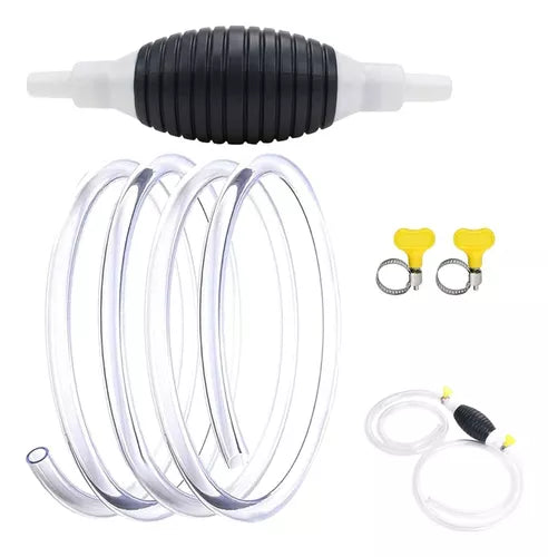Ideal para transferir gasolina, diésel, agua o aceites en vehículos, equipos de jardín, peceras y más. Una herramienta indispensable para el hogar y la carretera
