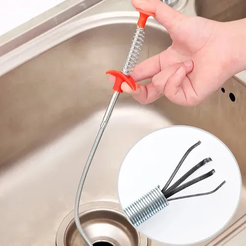 Su mecanismo de garras de acero inoxidable atrapa cabello, residuos y cualquier objeto atascado, permitiéndote extraerlos con facilidad
