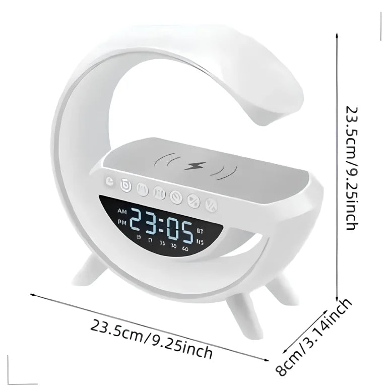 Di adiós a los cables desordenados. Con la lámpara tipo G, simplemente coloca tu smartphone sobre la base y disfruta de carga rápida inalámbrica.